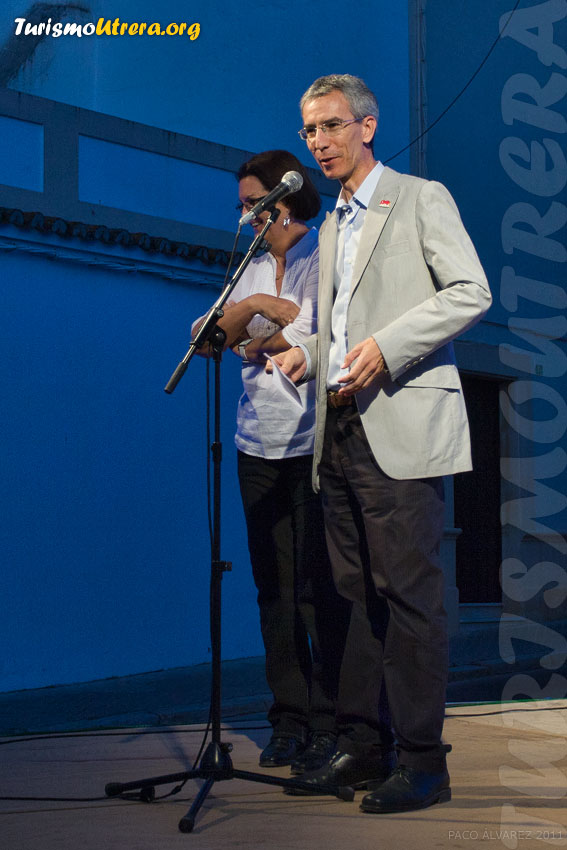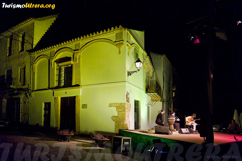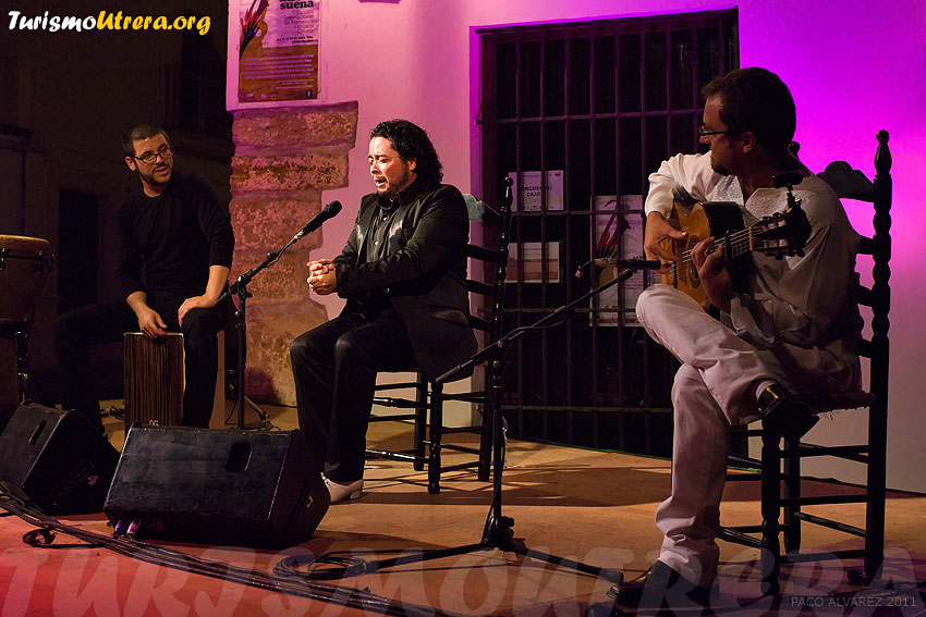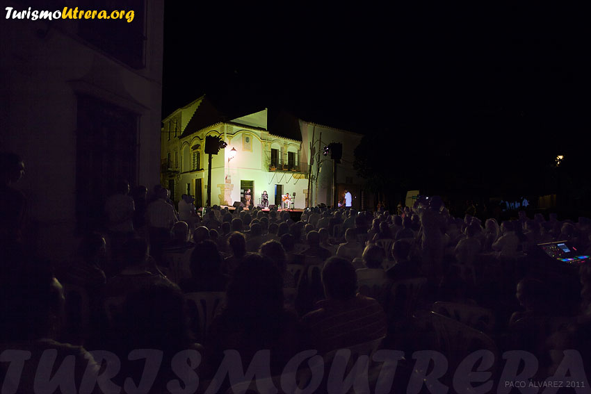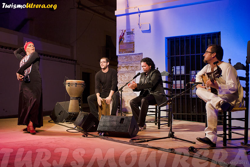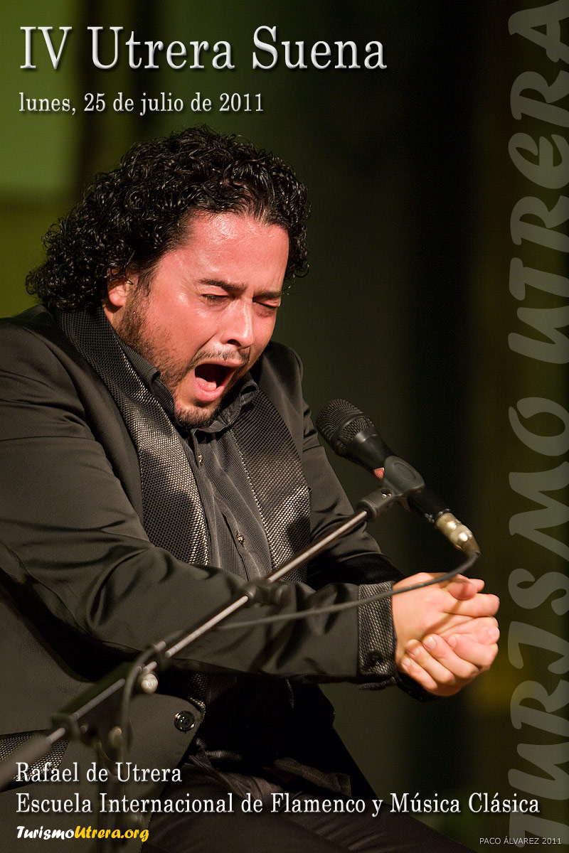 | IV Escuela Internacional de Flamenco y Música Clásica "Utrera Suena" 2011  UTRERA SUENAPRESENTACIÓNBASESDETALLES El pasado lunes 25 de julio se inició la cuarta edición de la Escuela Internacional de Música Clásica y Flamenco “Utrera Suena”. Desde las 9 de la mañana los 87 alumnos/as matriculados llegados de todos los puntos de la Península, Canarias y también de Holanda e Italia, fueron recibidos en la Casa de la Cultura por la delegada de Cultura Mª José García Arroyo, el director de la escuela Juan M. Jiménez Alba, el director del seminario de flamenco Rafael de Utrera y el equipo organizador, quienes entregaron credenciales y horarios al alumnado para comenzar seguidamente las clases en la misma Casa de Cultura, CEIP Rodrigo Caro y Conservatorio Elemental, en horario de 9 a 14h y de 17 a 21h, con piscina y comida en el mediodía y espectáculo nocturno abierto a todo el público. A las 22h de este primer día de escuela se celebró el primer concierto, a cargo de Rafael de Utrera, fue en la Plaza de Enrique de la Cuadra, delante de la Oficina de Turismo de Utrera.
