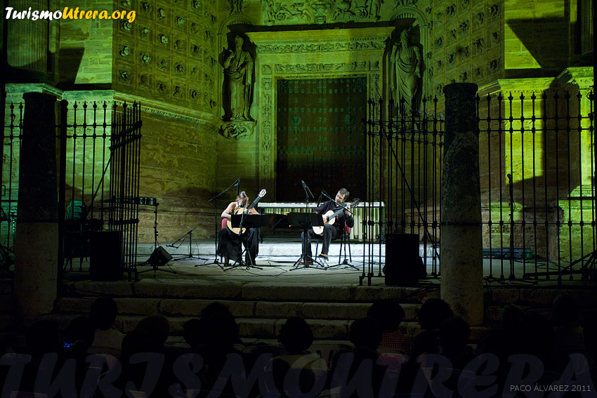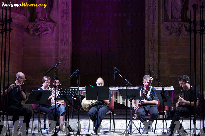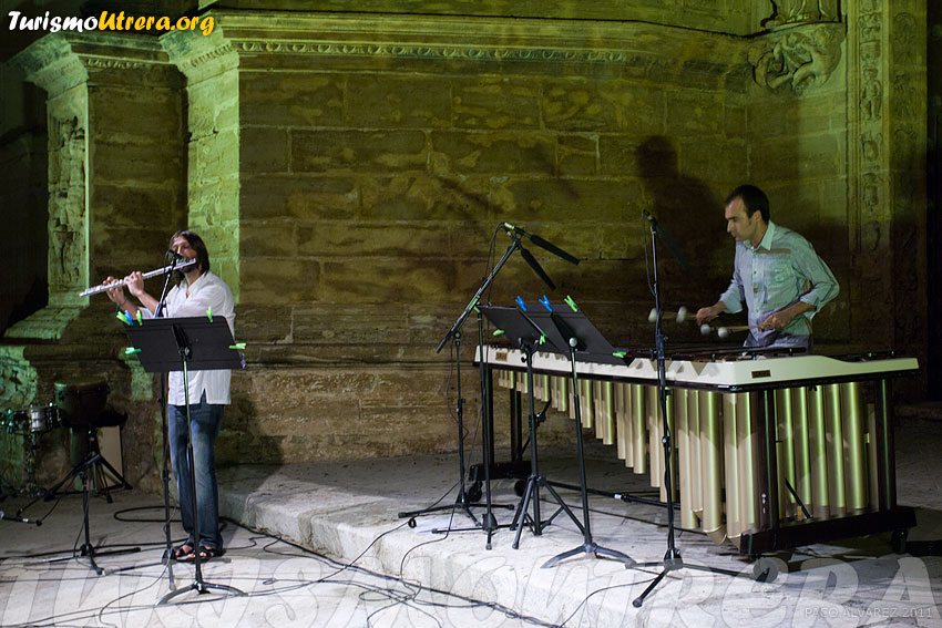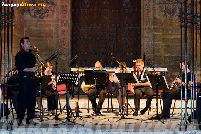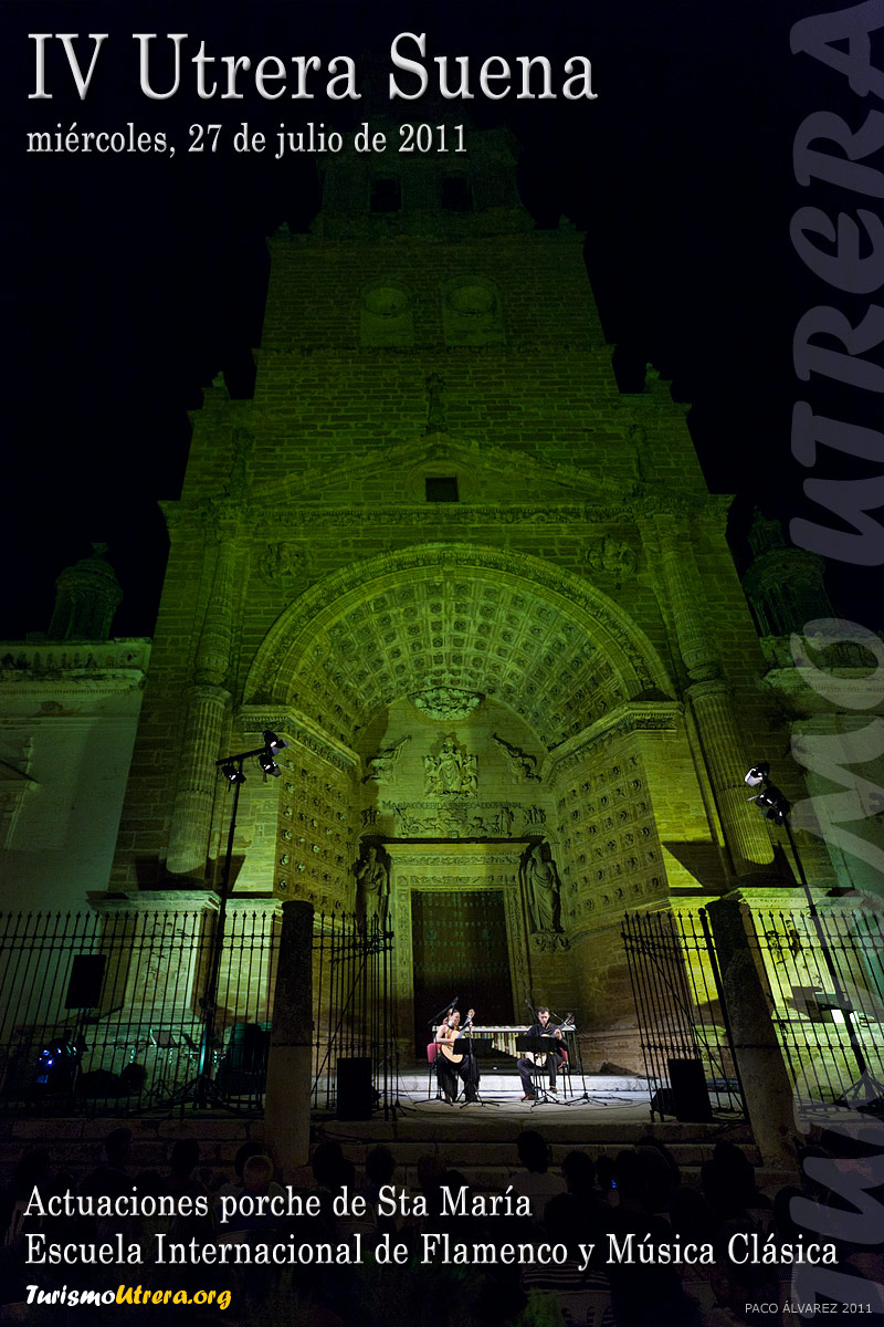 | IV Escuela Internacional de Flamenco y Música Clásica "Utrera Suena" 2011 UTRERA SUENAPRESENTACIÓNBASESDETALLES En uno de los marcos más bonitos y representativos de Utrera, como es el porche de la Parroquia de Santa María de la Mesa se celebró este tercer día, miércoles 27, las actuaciones de clásica y flamenco. El programa de actuaciones fue el siguiente: Tres estaciones porteñas (Astor  Piazolla) Three Shanties (M. Arnold).  Quinteto de viento Scaramouche (D. Milhaud). II Vif II  mode´r II Brazileira. Quinteto viento Solea (Juan Parrilla) y Alegrías (Juan  Parrilla) José Quevedo “El Bolita”  (guitarra)
